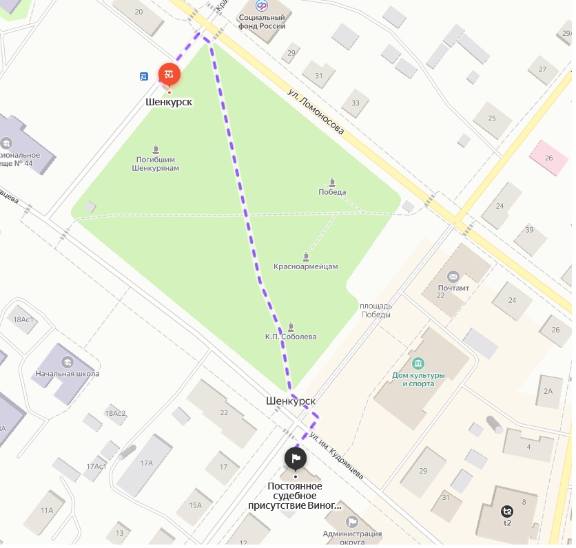 Схема проезда к зданию Виноградовского РС (здание 2) от автобусной остановки г. Шенкурск